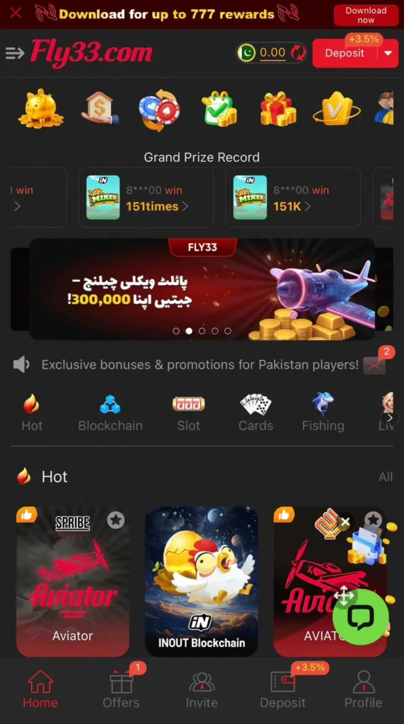 One of the standout features of the Fly 33 Game is its extensive game library. Users can dive into fast-paced action with games like Aviator and Mines or test their luck and strategy with Slots, Fish, Jilli Cards, and Dragon & Tiger. The app’s intuitive design and seamless navigation make it easy for users to switch between games, enhancing the overall user experience.